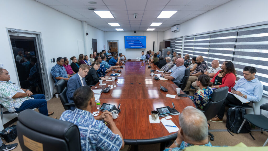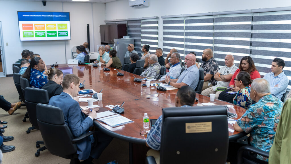 Joining the Governor in these discussions were CNMI U.S. Delegate Kimberlyn King-Hinds along with leadership from the Senate and House of Representatives, Commonwealth Bureau of Military Affairs, Department of Commerce, Department of Finance, Marianas Visitors Authority, Commonwealth Ports Authority and Commonwealth Office of Transit Authority.