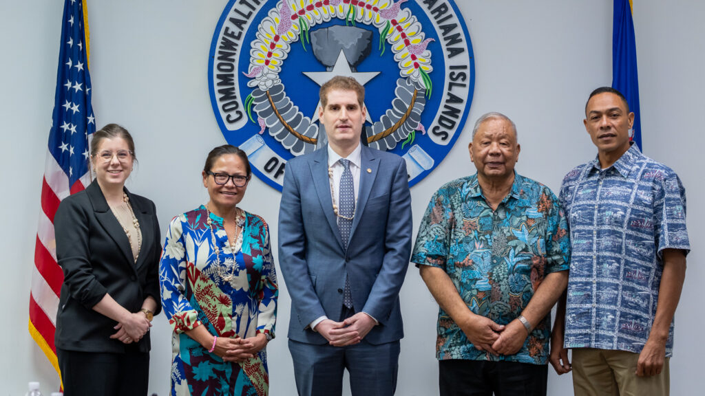 Governor Apatang and Lieutenant Governor Mendiola welcomed Jared Smith, Principal Deputy Assistant Secretary for Aviation & International Affairs, and Tricia Kurban, Negotiator with the U.S. Department of Transportation Negotiations Division, for a high-level meeting focused on strengthening transportation connectivity in the CNMI and the broader region.