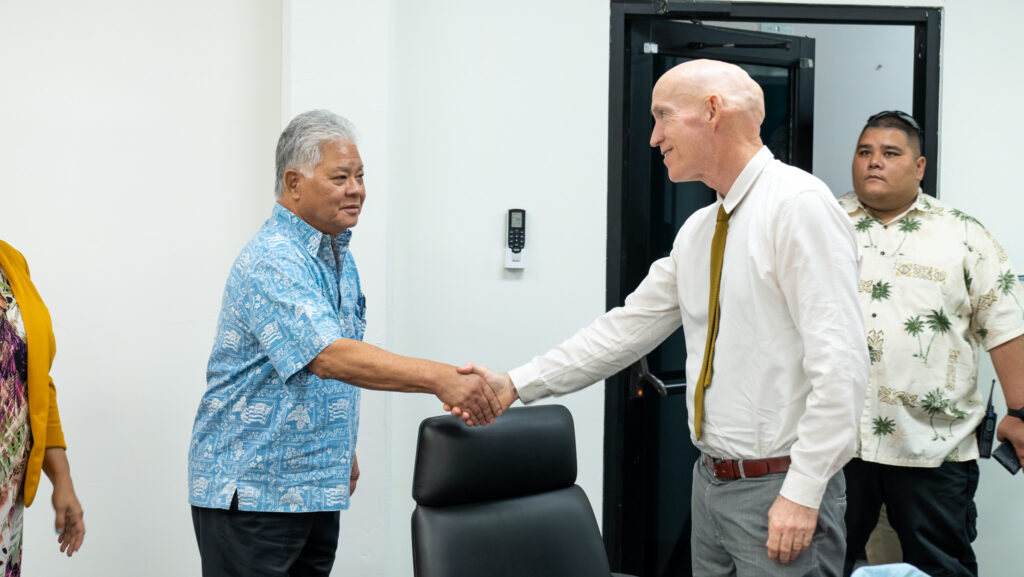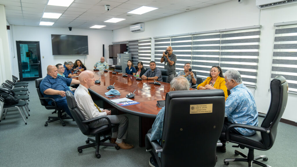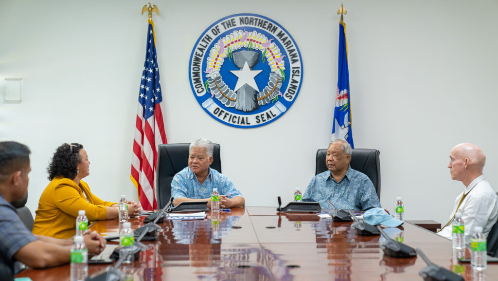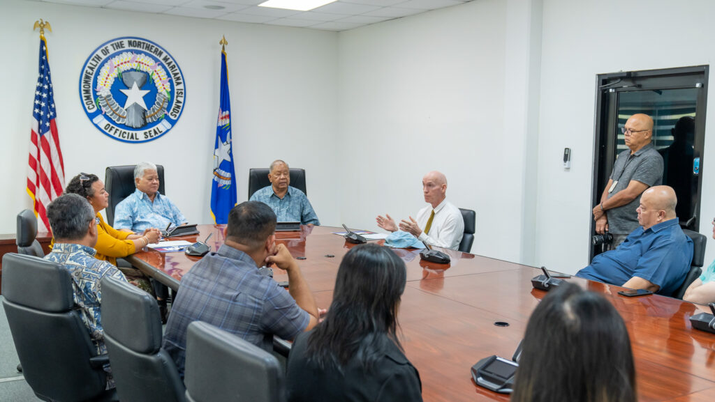 Governor Arnold Palacios and Lt. Governor David Apatang were joined recently by CNMI Department of Labor Secretary in meeting with the U.S. Department of Labor District Director of the Wage & Hour Division Terence J. Trotter, the U.S. Department of Labor Assistant District Director for Guam and the CNMI Patrick G. Candoleta, and the U.S. Department of Labor Wage & Hour Division Investigator Feng Daniel Wang to sign a memorandum of understanding.