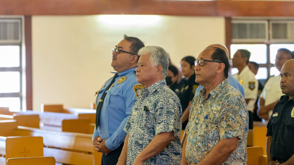 As part of CNMI Police Week, the annual blue mass took place this morning at Our Lady of Mt. Carmel Cathedral, paying tribute to law enforcement officers who have made the ultimate sacrifice in the line of duty, as well as those who continue to serve today.