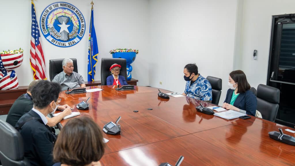 In an ongoing effort to recover and repatriate Japanese war remains in the Commonwealth, Governor Arnold I. Palacios and Honorary Governor Ana Nakatsukasa earlier today received a courtesy visit from the Japanese Association for Recovery & Repatriation of War Casualties (JARRWC) during their third trip to the CNMI.