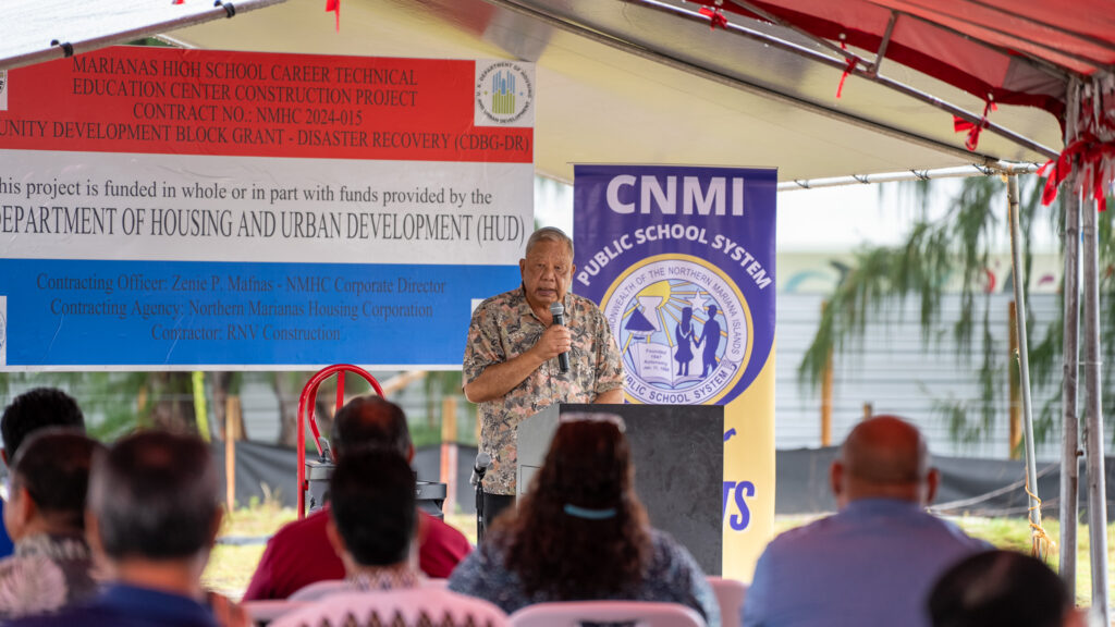 Governor David M. Apatang joined officials for the ceremonial groundbreaking of the new Career & Technical Education Center at Marianas High School.