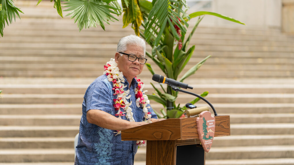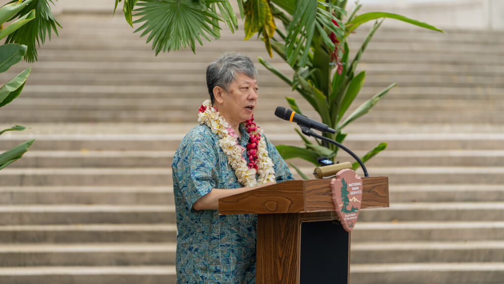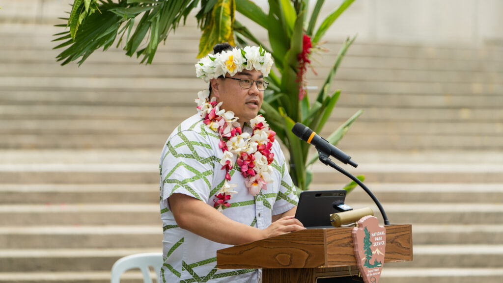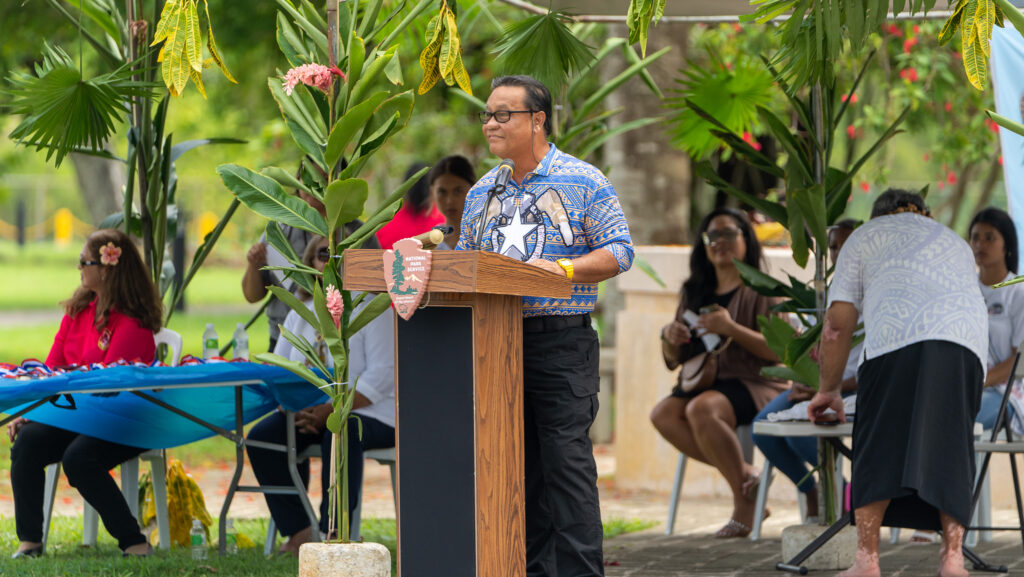 Among the dignitaries who delivered their remarks were Barbara Alberti, Superintendent of the National Park Service; Keone Nakoa, Deputy Assistant Interior Secretary for Insular and International Affairs; Mark Hashimoto, Executive Director of Marine Forces Pacific; local historian Don Farrell; Japanese Consul Ryogi Takagaki; and Saipan Mayor Ramon “RB” Camacho.