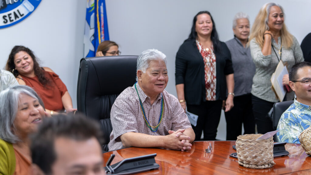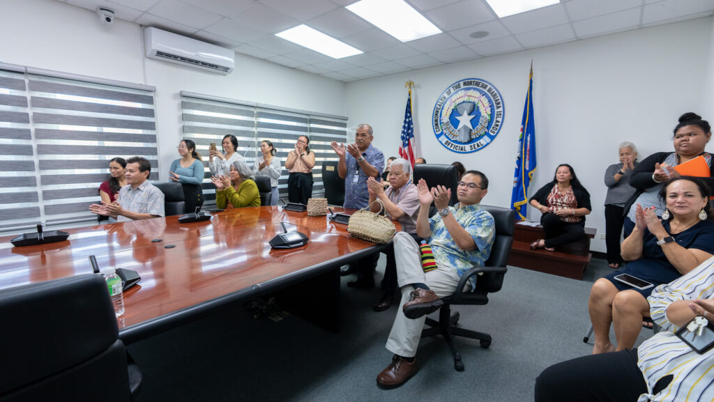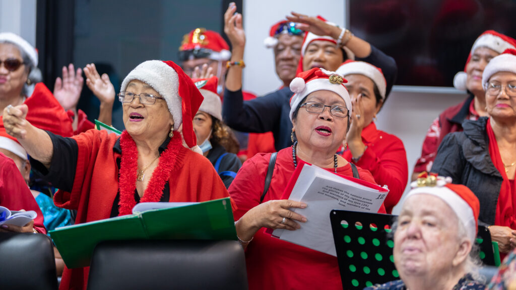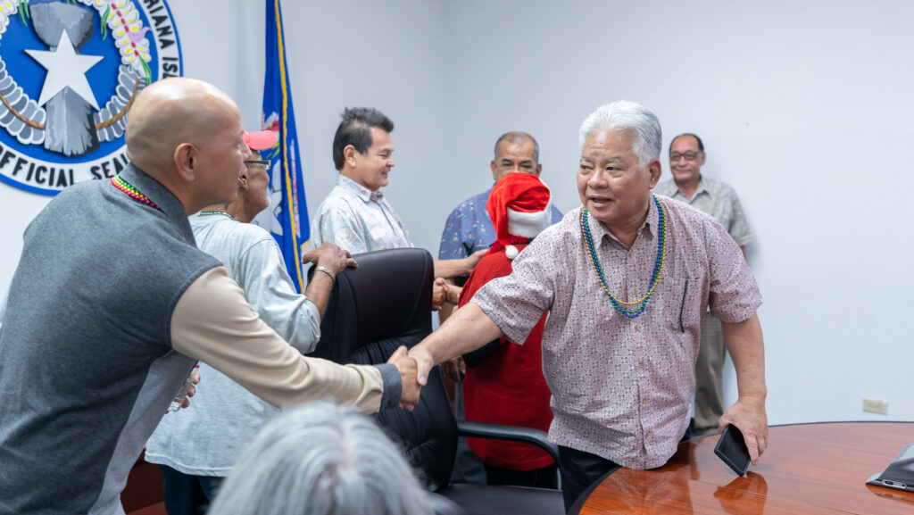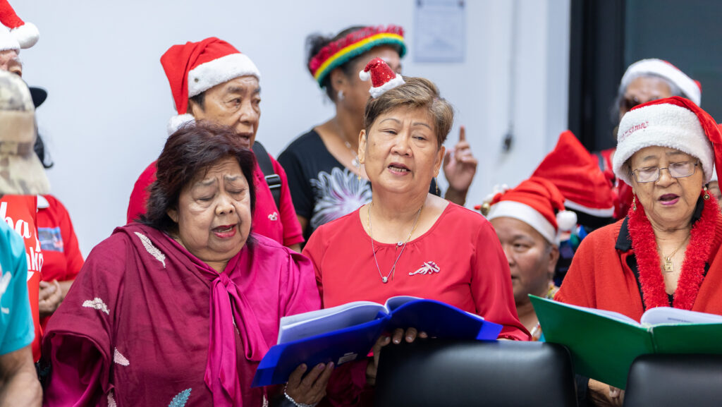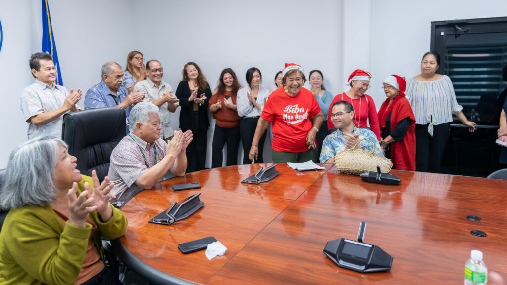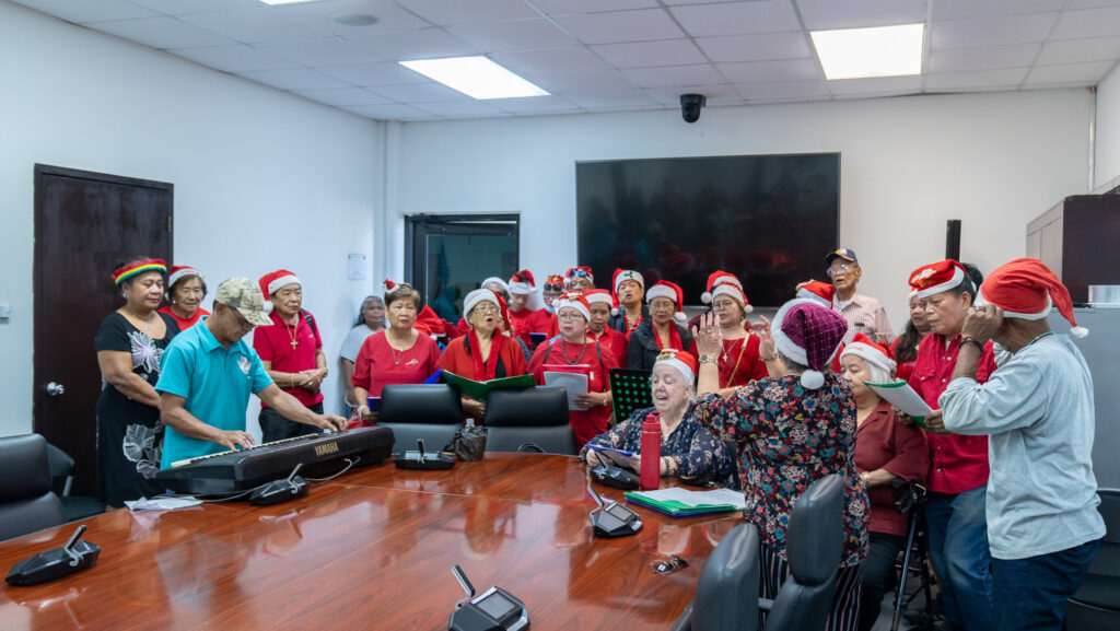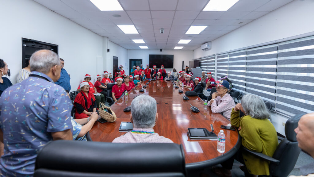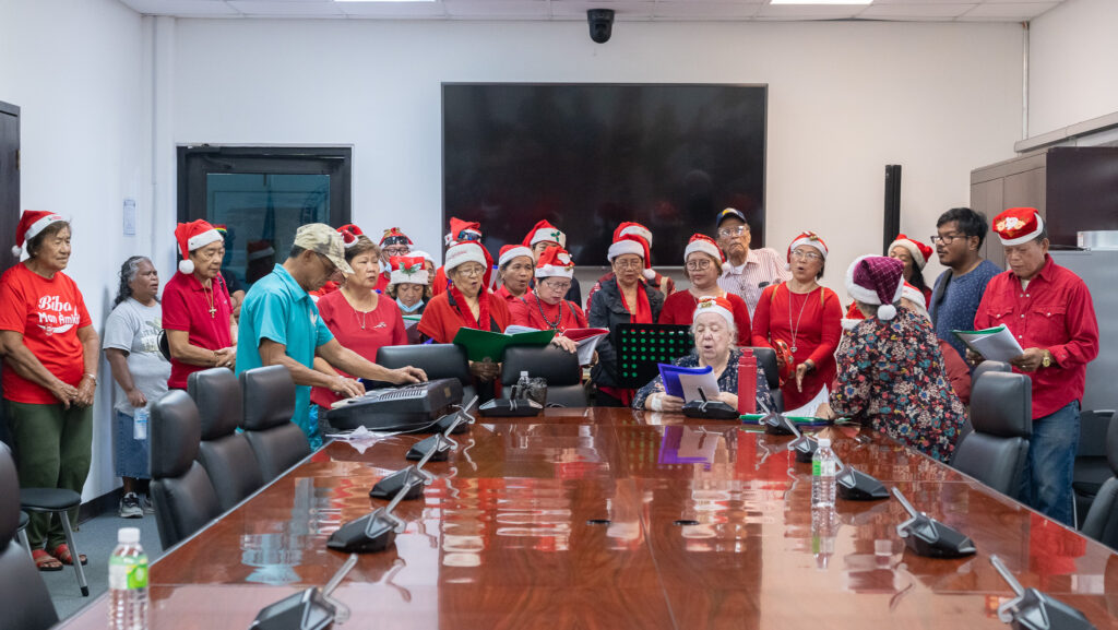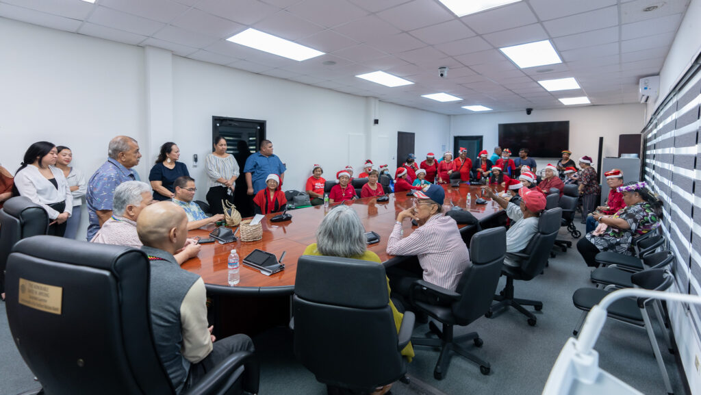 Carolers from the Saipan Man Amko’ Center recently visited the Office of the Governor, where they sang Christmas carols to spread joy and holiday spirit. Audience members included Governor Arnold I. Palacios, DLNR Secretary Sylvan Igisomar, OMB Special Assistant Virginia Villagomez, and staff members from the Office of the Governor & Lt. Governor, the Attorney General’s Office, and the Office of Management and Budget. The carolers were accompanied by Walter Manglona, Director for the Office of Aging.