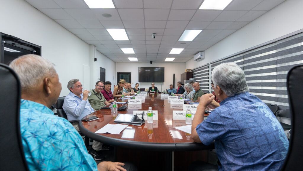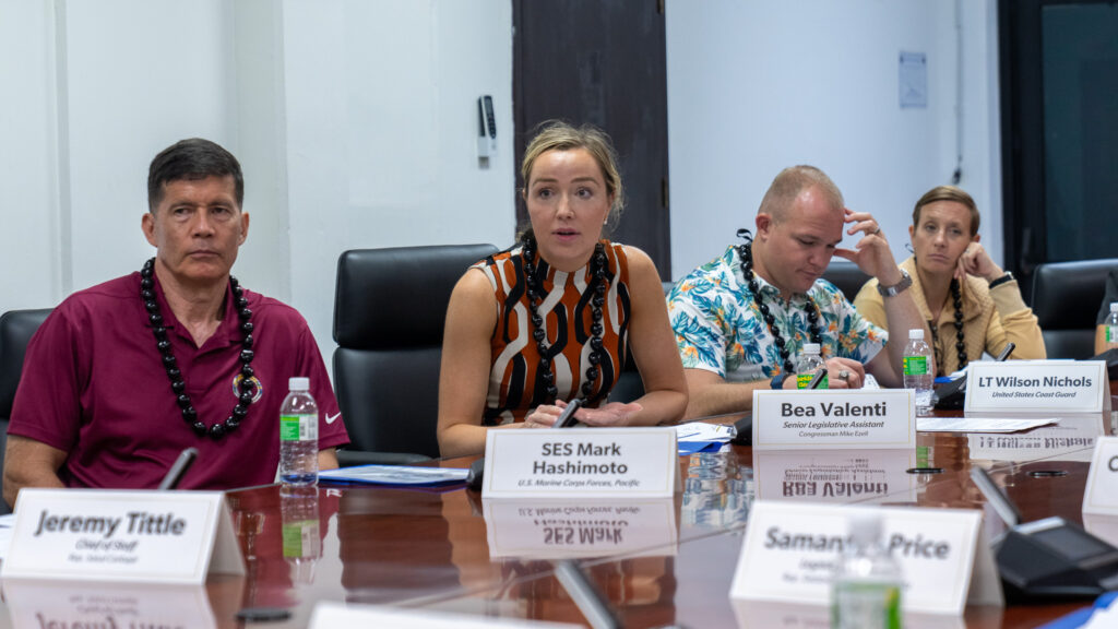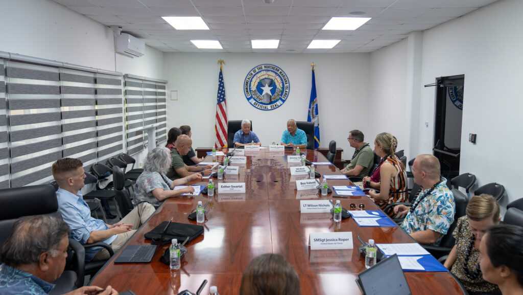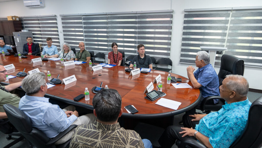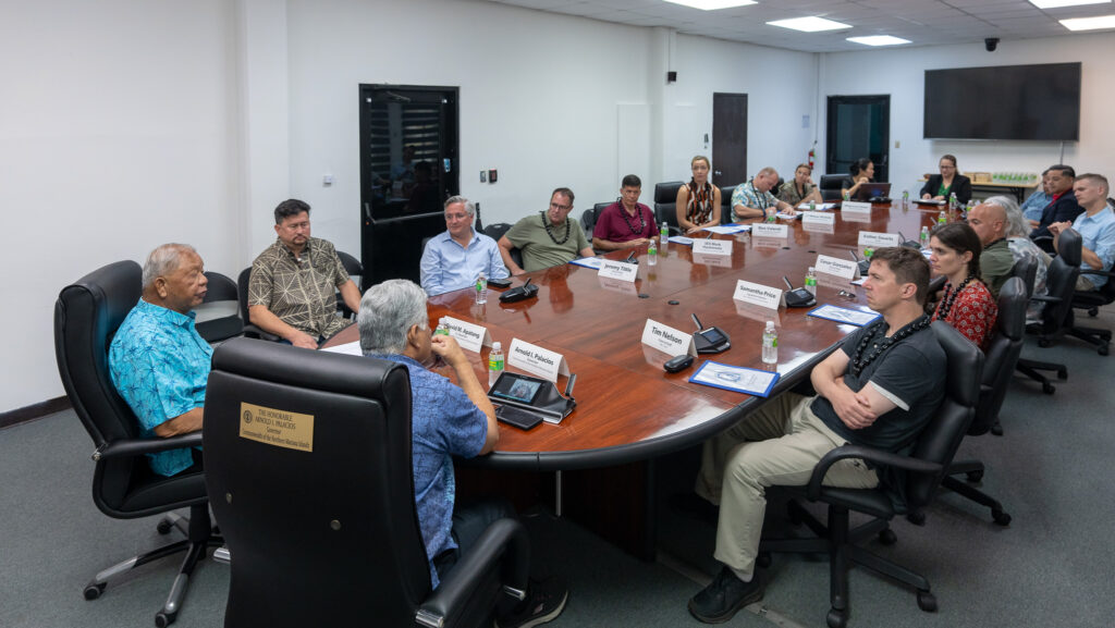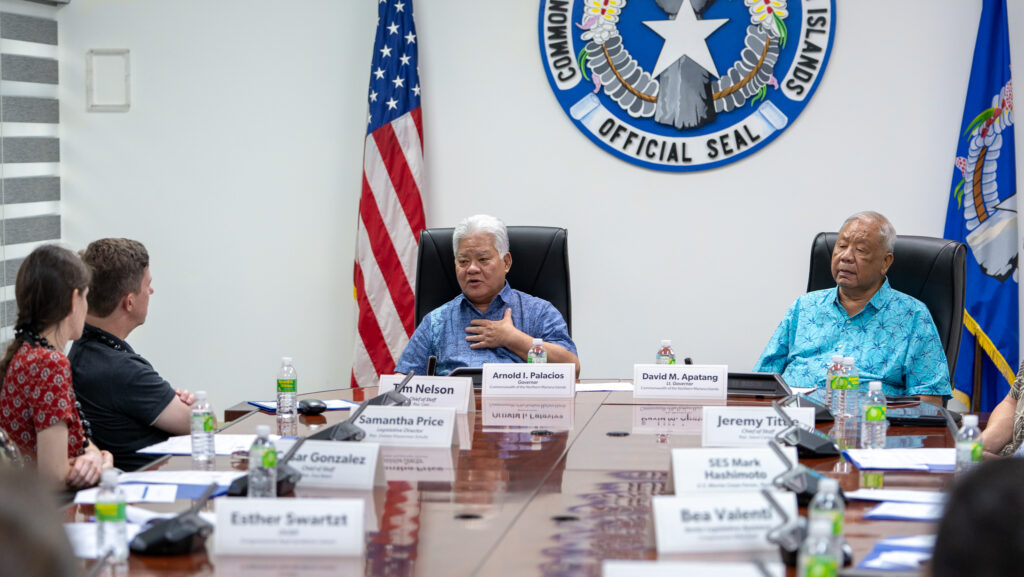 Governor Arnold Palacios and Lt. Governor David Apatang today met with a staff delegation from the U.S. House of Representatives – Committee on Defense Appropriations. Their discussion focused on economic and military priorities and other topics meant to provide the congressional staff expanded understanding of the urgent issues that are facing the CNMI, especially as it pertains to appropriations from U.S. Congress. Governor Palacios reiterated that the economic stability of the CNMI is inextricably tied to national interests of the United States; he sought legislative advocacy, funding assistance, and other support from the staffers.